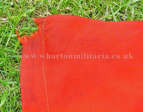 WW2 German vehicle recognition drape or panel as used by almost all the German ground forces, approx 95x76 cms, excellent quality printed swatika on white roundle stitched to the red backing material, as with most of these panels the corner eyelets are missing. A fine recognition panel in excellent condition.