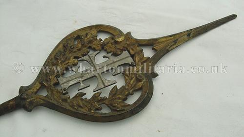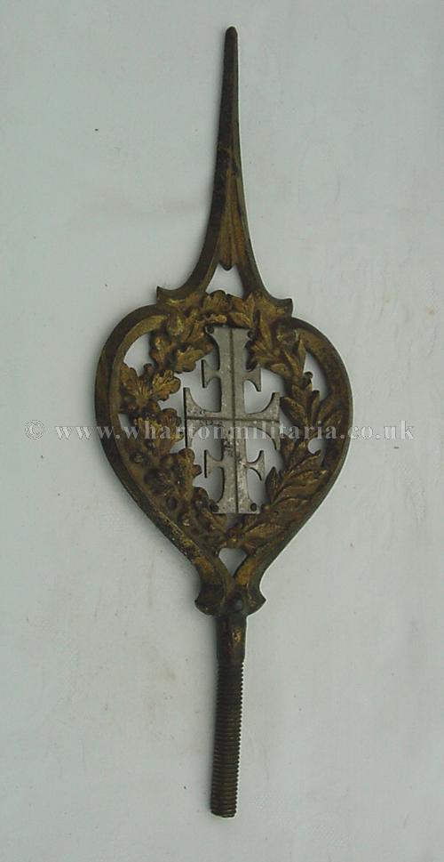 Scarce early German National Youth Group banner top, circ late 1920s into the 1930s, these were the forerunner of the Hitler Youth and SA sports regime. Banner top is in excellent condition retaining much of its gilted finish, once this organisation was dissolved this banner top no doubt ended up a sleeper in a cupboard somewhere. A really nice scarce piece.