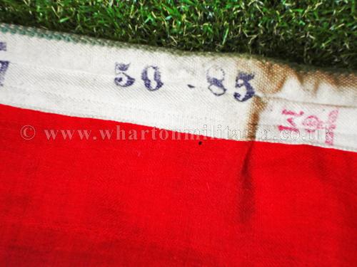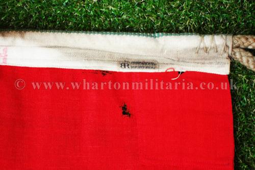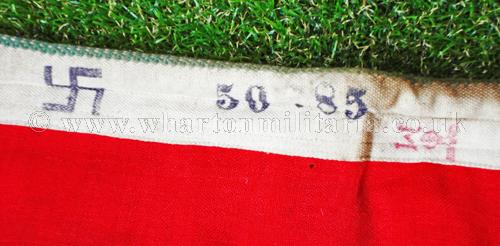 A scarce Kriegsmarine motor launch and harbour Pilot's flag in excellent condition, approx size is 85 x 50 cms, nicely marked with a swastika and size along with the Kriegsmarine issue stamp plus maker's label. Flag has a couple of small moth nips otherwise in near unissued condition. Beautiful flag that is difficult to find these days.