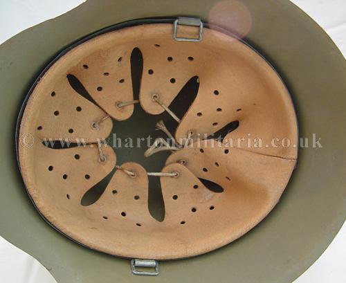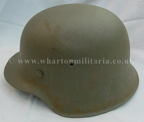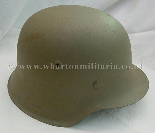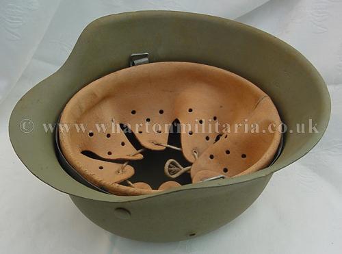 An M42 'raw edge' German steel helmet in excellent condition, complete with its liner which is maker marked and dated 1943, size 58. The liner is in almost unissued condition, the leather is basically supple to going stiff. The helmet shell is in excellent shape, marked hkp66 and batched 5618. The steel integrity has not been compromised at all, there are none of the usual bumps or dents. The helmet shell retains a tan paint across its surface, some minor marks visible - see photographs. A nice honest M42 helmet that was most likely Balkans or Italy rather than Africa.
