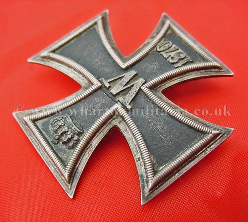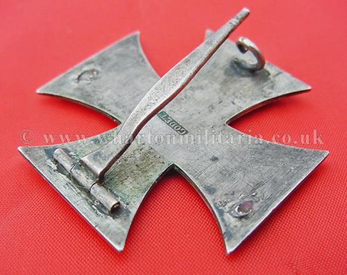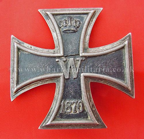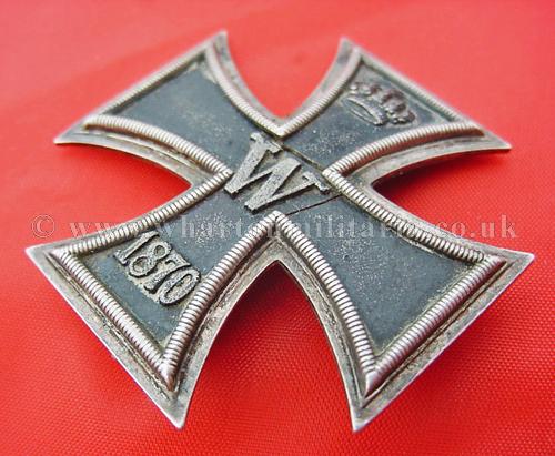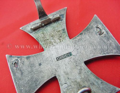 1870 Iron Cross 1st Class, vaulted type by Godet with detailed iron centre, slight crack in the upper arm of the iron center and towards the right arm, quite common for an Iron Cross of this age and does not detract from the medal, wide silver frame, side loops removed at time, only awarded 1307 times, a fine example of a scarce early first class Iron Cross.