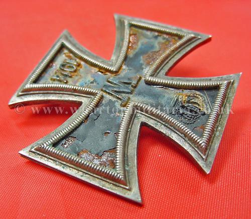 1914 Iron Cross 1st Class, very good condition, flecks of rust to iron core and some lifting of the black coating on the core, minimal signs of wear, very crisp core detail, has simply sat in box or such which has been a little damp at some point hence the surface rust on the core, nice overall patina, unmarked, however nice example of an Iron Cross 1st Class.