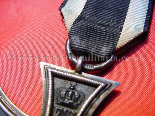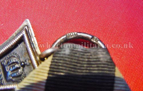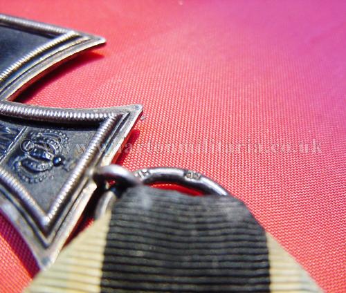 1914 Iron Cross 2nd Class, excellent condition retaining much of the silver finish to the frame, the 'W' on the core shows a fault on the tooling when striking the core at the time of manufacture, the ring is double stamped 'CD' and '800', lovely example of a WW1 Iron Cross 2nd Class with a tooling flaw and the bonus of being double stamped, nice variation for the serious collector.