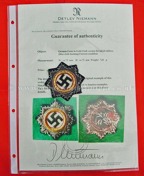 German Cross in Gold, cloth version for Kriegsmarine