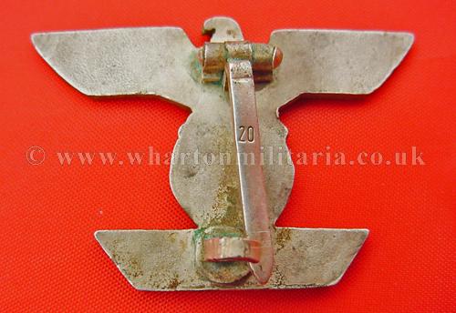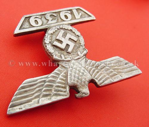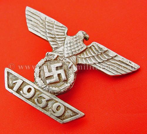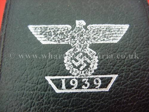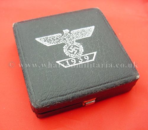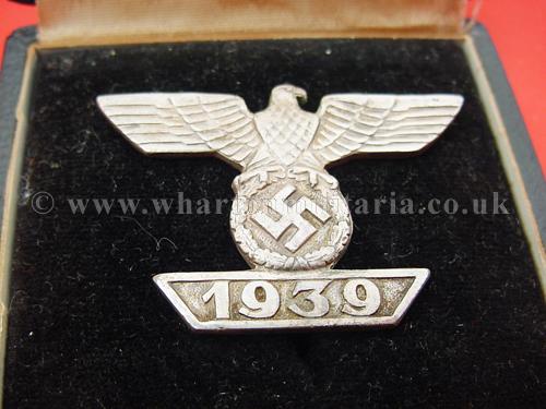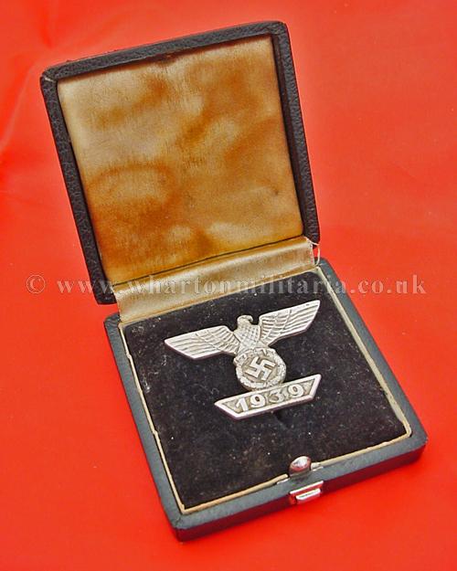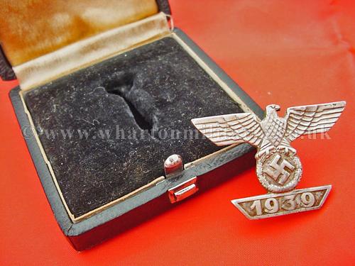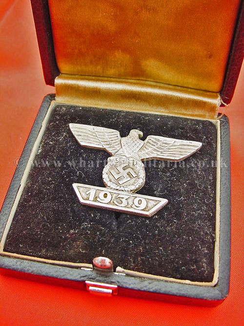A fine example of a 1st class bar to the Iron Cross within its issue award box, in excellent condition, has been worn though the detail is still sharpe. This back has the broad pin fitting and is maker marked '20' for Zimmermann of Pforzheim.