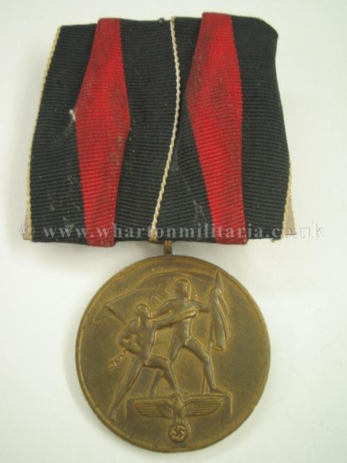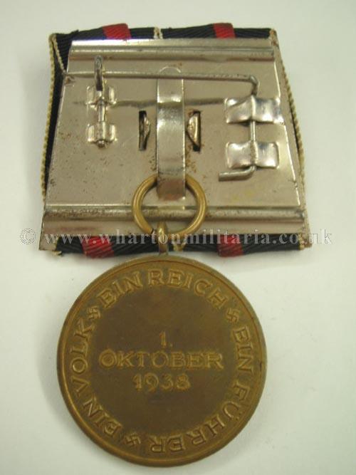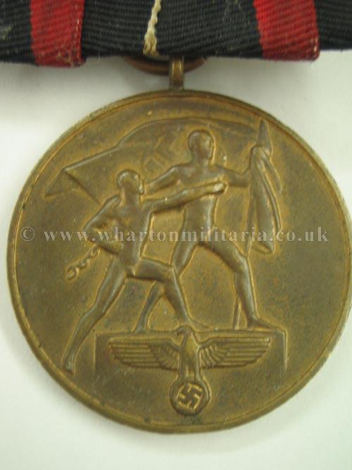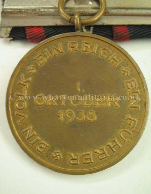 A Sudatenland / 1st October 1938 medal - WW1 style ribbon mount suggesting a retired WW1 veteran within the civil service or police.