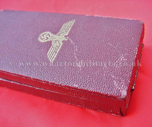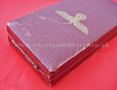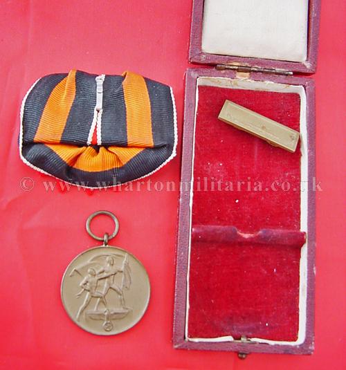 A very unusual boxed Sudatenland, 1st October 1938, medal with Prague bar, in excellent condition and with pin fitting to a court mounted ribbon. Prague bar is in lovely crisp condition, has never been fitted or touched. Box is in excellent condition with gold eagle to the front, edge wear and surface marks other wise in perfect structurally sound condition. Excellent example with a well presented ribbon, not often seen to mount this level of medal, somebody was once very proud to display this award. If your collection requires a premium example of this boxed award then this is the October Medal for you.