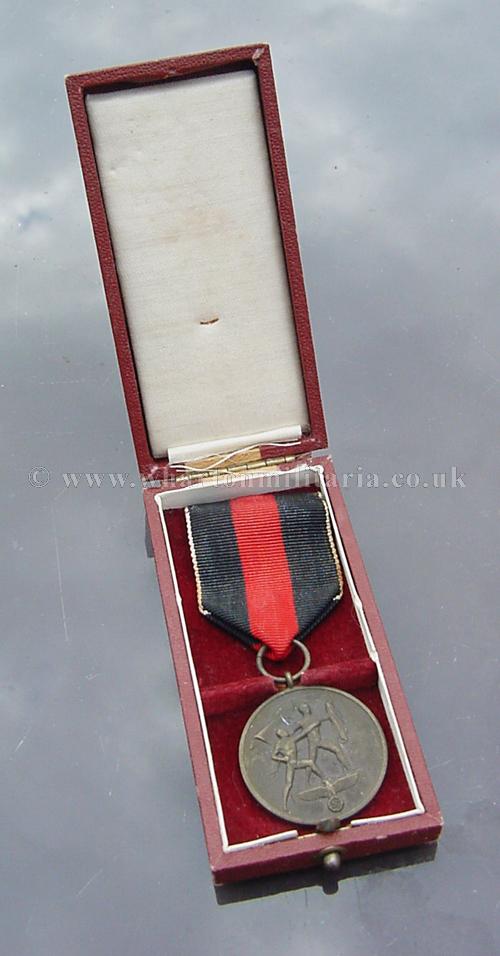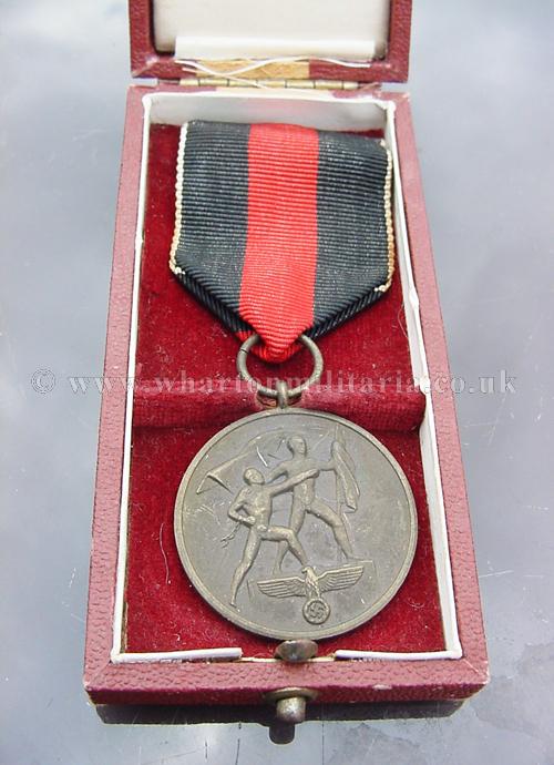 A Sudatenland / 1st October 1938 medal in unissued unworn condition with pin fitting to the ribbon, box in very good condition.