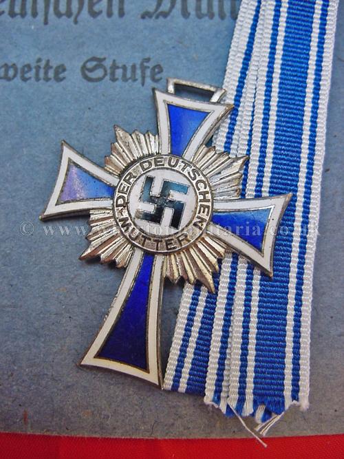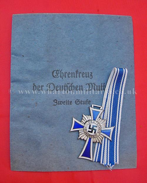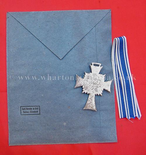 Mothers Cross in silver with ribbon, in unworn condition retaining all silver finish, unworn ribbon, packet maker marked 'Carl Forster & Graf, a nice example and hard to find in this condition.