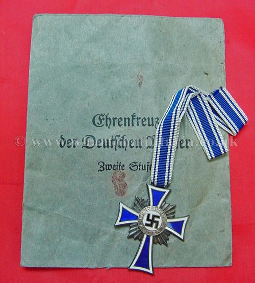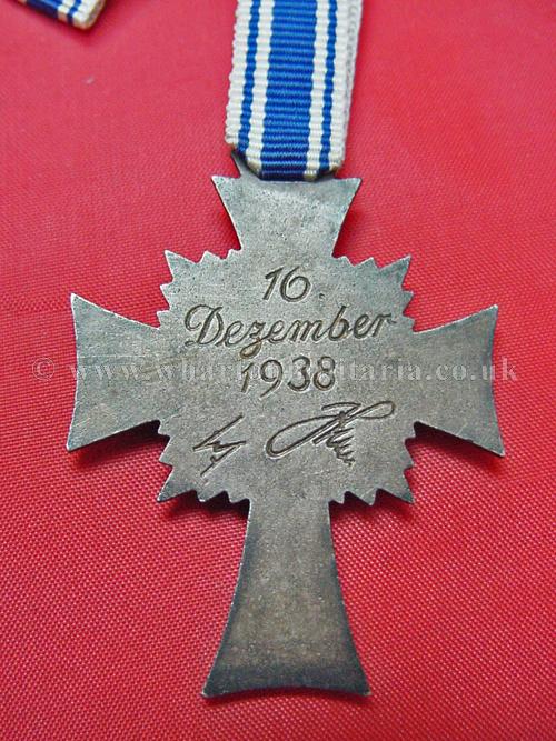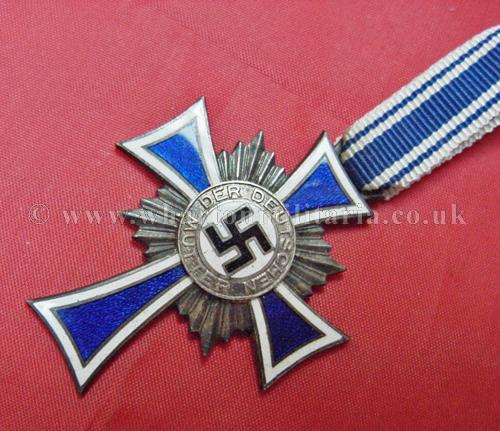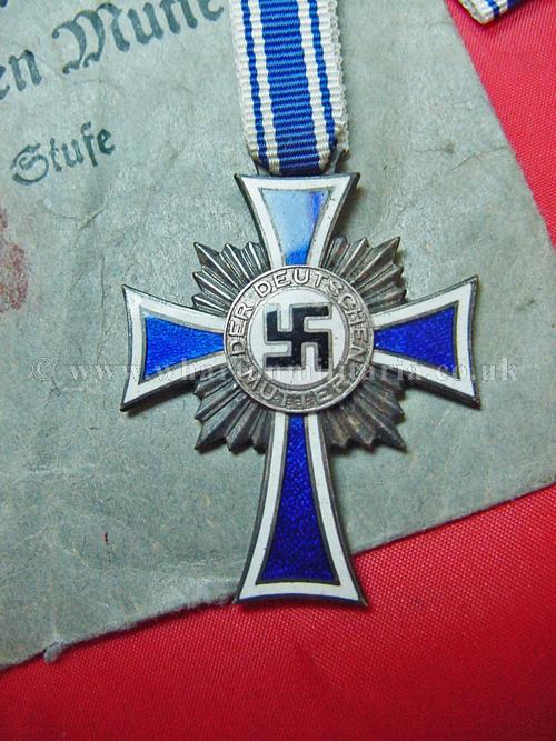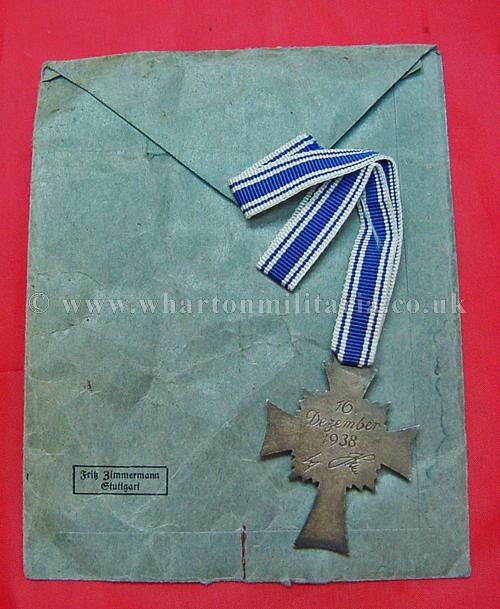 Mothers Cross in silver with ribbon, in unworn condition retaining all silver finish, unworn ribbon, packet maker marked 'Fritz Zimmermann, Stuttgart', a nice example and hard to find in this condition.
