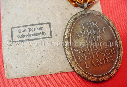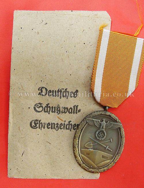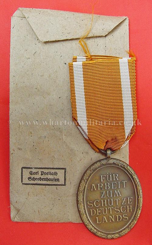 West Wall Medal in packet of issue, in excellent unissued condition, packet a little creased on the rear flap, nice example of the medal