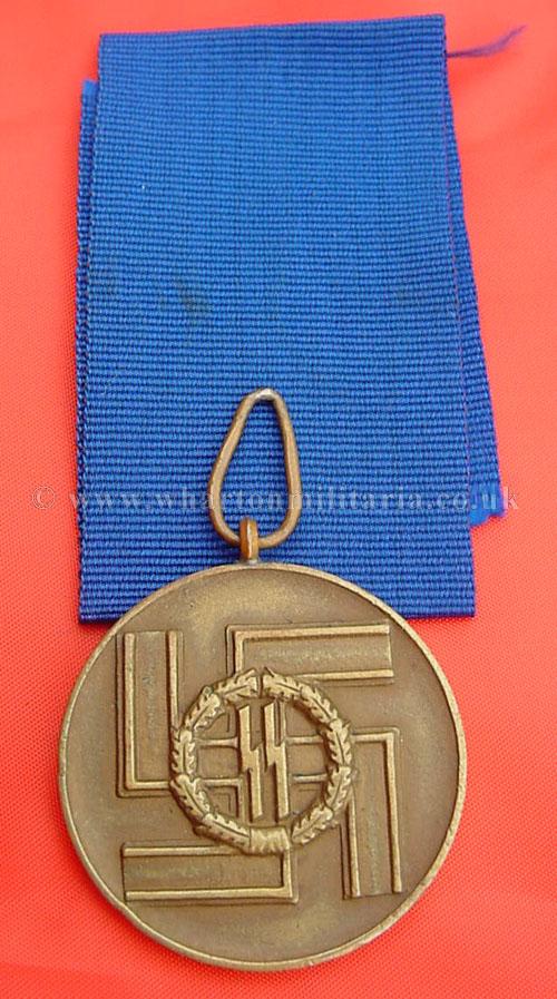 SS Long Service Medal for 8 years, complete with its ribbon, an excellent example of this scarce medal
