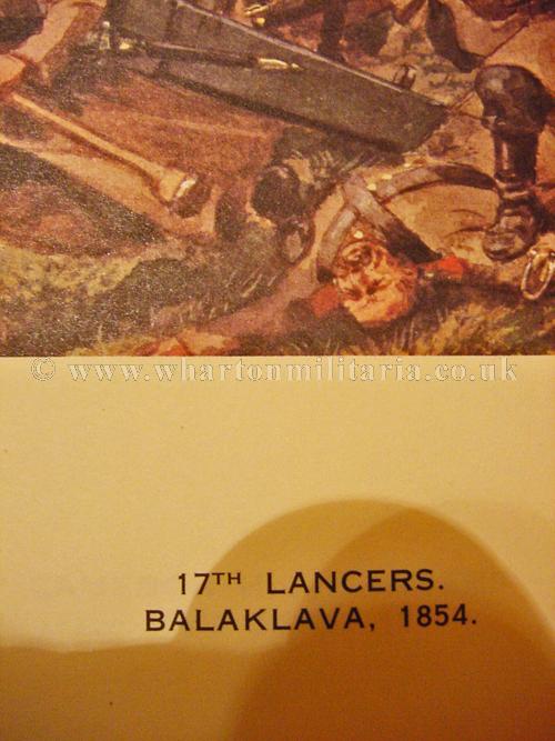 A scarce limited print run of the 17th Lancers at Balaklava 1854. This is a limited print of the series of the Regiments at war, printed by Her Majesty's Printers in 1974, the original being painted by R Simkin. Beautifully executed, size approx 19 x 14.5 inches, would look stunning mounted. The print is old but unused so as new in condition.