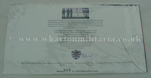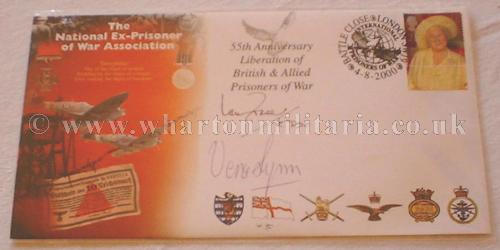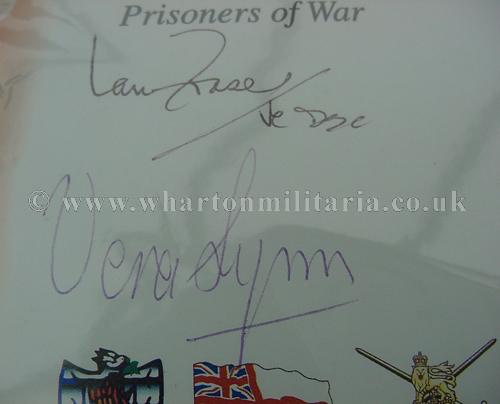 A very scarce limited edition cover issued by the National Ex-Prisoner of War Association, number 69 of 1250. The cover is signed by Dame Vera Lynn (Patron of the Association), Earl Haig (President of the Association) and Lt. Commander I.E. Fraser VC, DSC. RNR (XE3 midget submarine sinking of the Japanese heavy Cruiser Takao). The card was issued 4th August 2000 for the 55th Anniversary of the liberation of British and Allied POWs. This is a very collectable cover in its own right that is further complimented by the signatures of a VC holder and Dame Vera Lynn. A choice investment for both the militaria and stamp collector.
