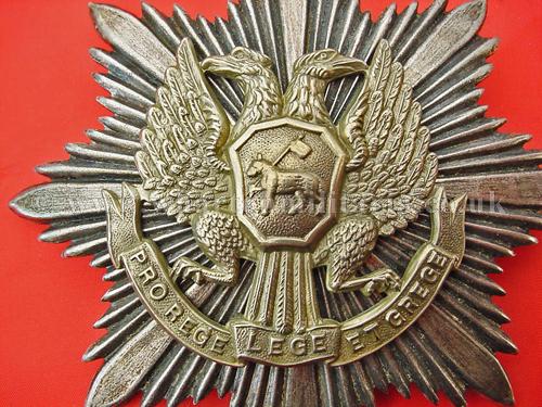 Scottish Volunteers Helmet Plate - A scarce Officers helmet plate of the 4th Perthshire Volunteer Battalion, The Black Watch (Royal Highlanders), circ 1887-1908, white metal, both lugs intact, lovely condition.