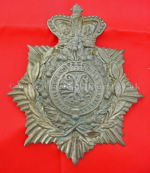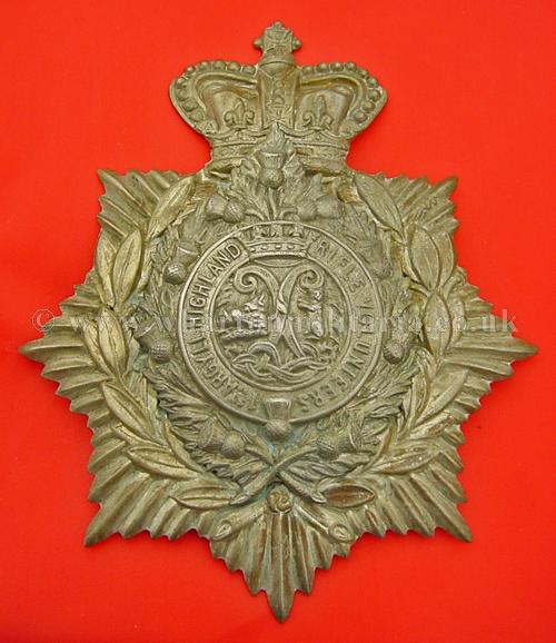 Scottish Volunteers helmet plate to the 1st Argyll Highland Rifle Volunteers, QVC crown, two long bonnet type lugs, good condition.