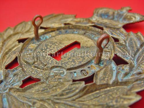 Other ranks Victorian helmet shako plate to the Royal Scots, circ 1869-1878, with two long lugs to the reverse, in good condition, some staining otherwise nice.