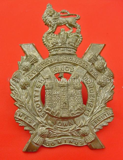 Other ranks Victorian glengarry badge to the Kings Own Scottish Borderers, good conditiond with both lugs intact, Edinburgh Castle to the centre of a Scottish cross on circlet bearing the title, thistle backing with lion on crown.