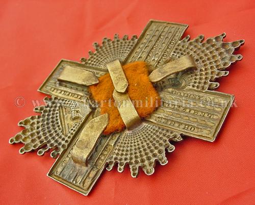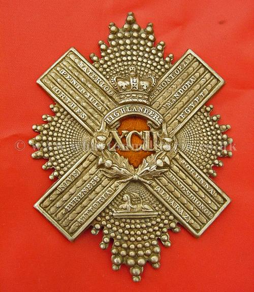 A fine example of a 92nd Gordon Highlanders officers helmet plate, scarce voided centre, still retaining all the blades and original cloth centre backing, these officers plates are quite hard to find.