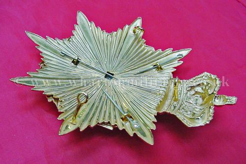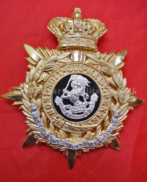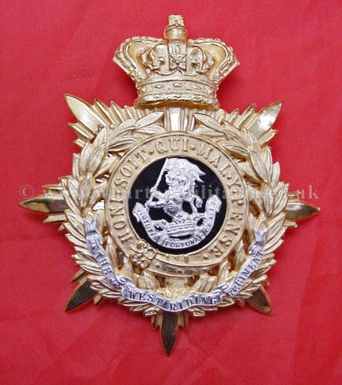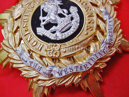 A scarce Victorian Officers helmet plate to the West Riding Regiment, QVC, gilt and silver plate, three lugs to the rear, in excellent condition retaining all finish.