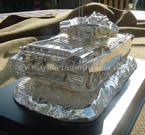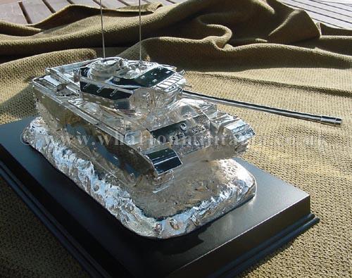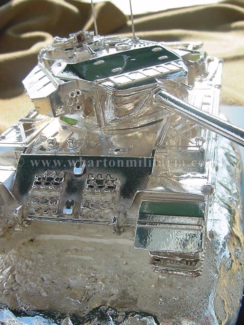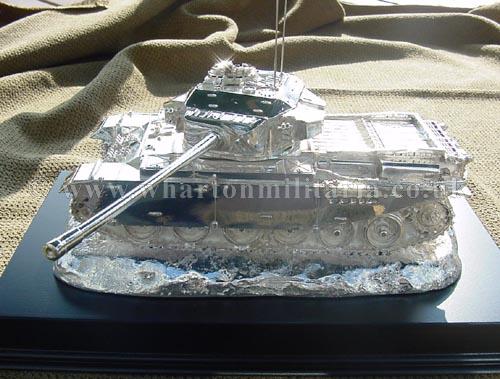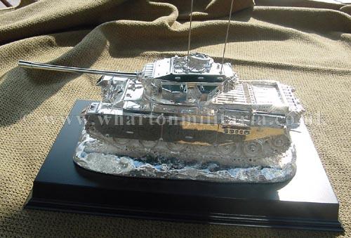 A beautiful hallmarked sterling silver mess table piece of a Centurion tank, this silver model is the finest silver Centurion tank made to date. The tank is an awesome 14 inches approx in length and extremely detailed. This tank was specifically made for the Royal Tank Regiment mess table.