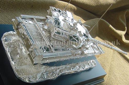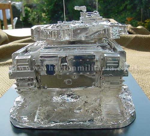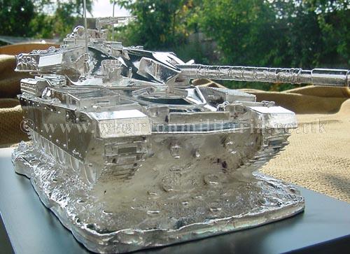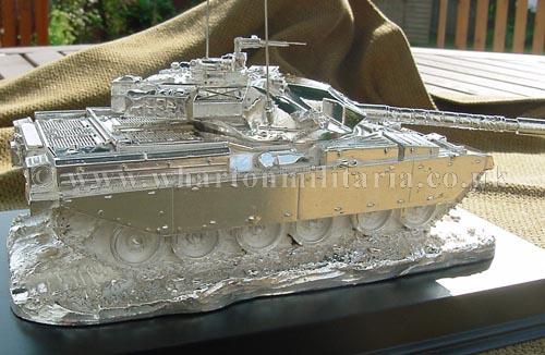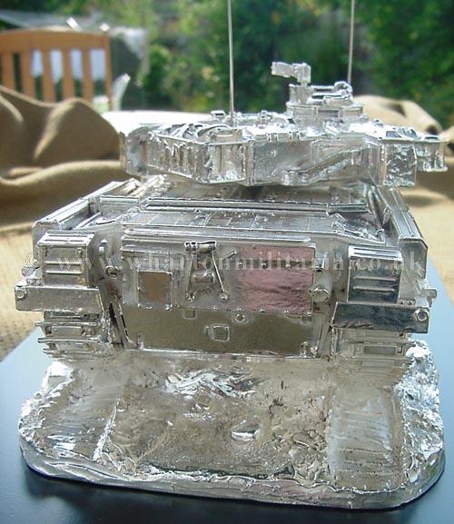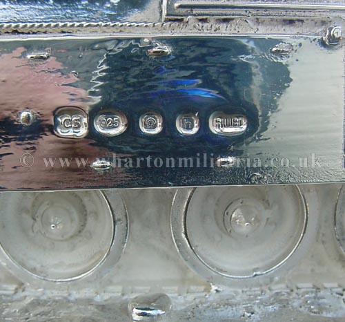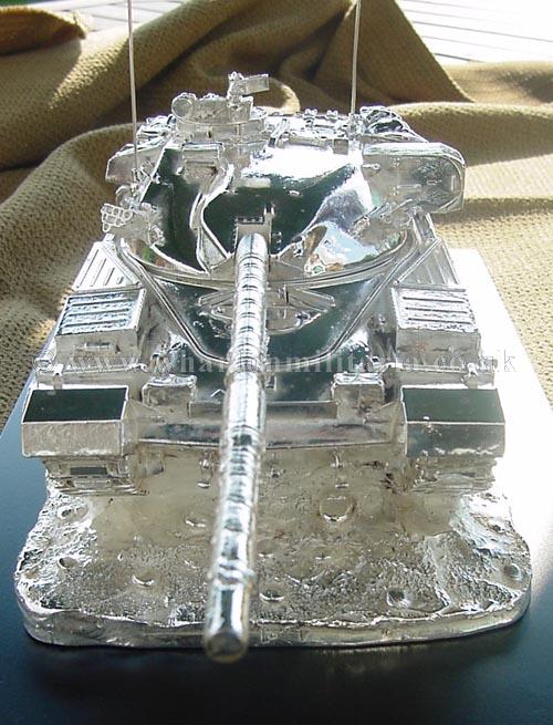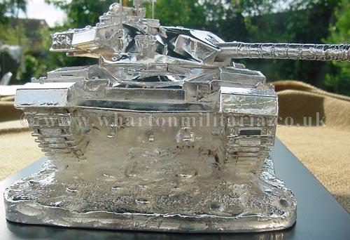 A beautiful hallmarked sterling silver mess table piece of a Chieftain tank, this silver model is the finest silver Chieftain tank made to date. The tank is an awesome 14 inches approx in length and extremely detailed. This tank was specifically made for the Royal Tank Regiment mess table.