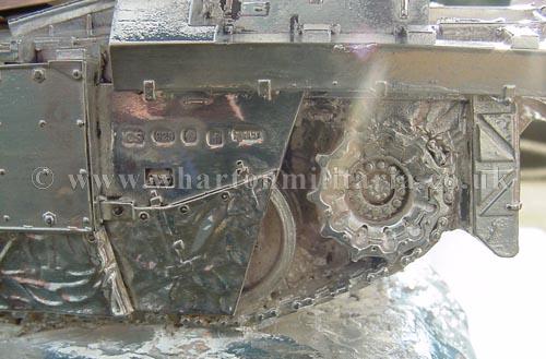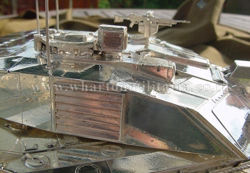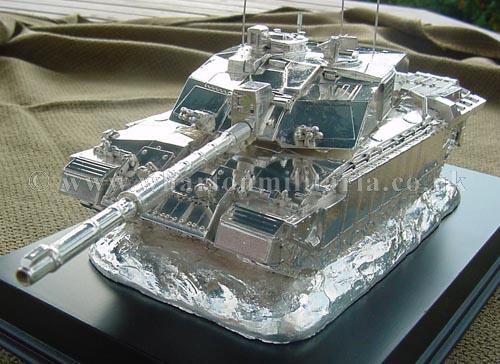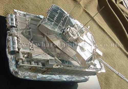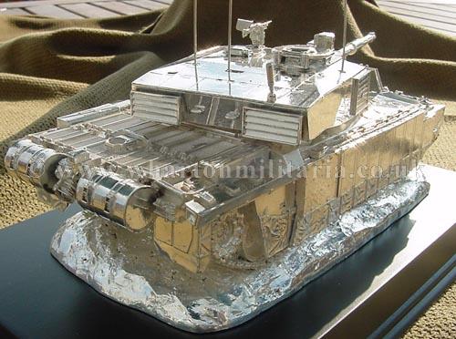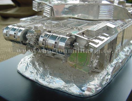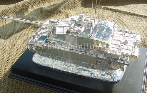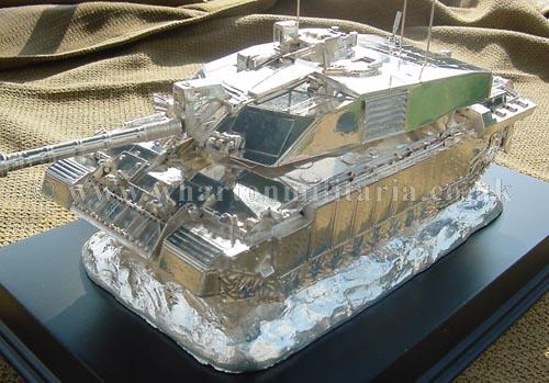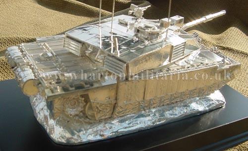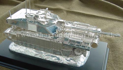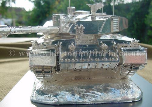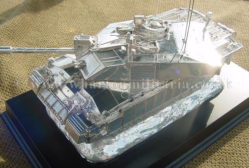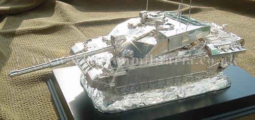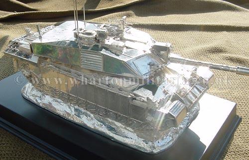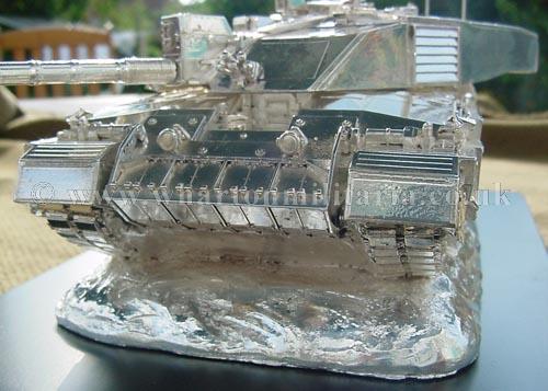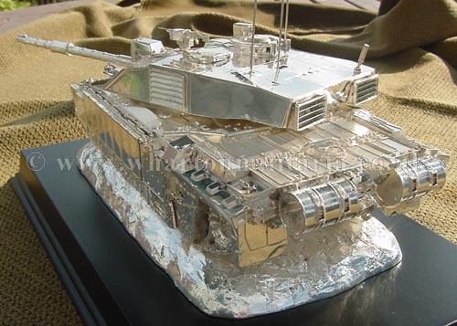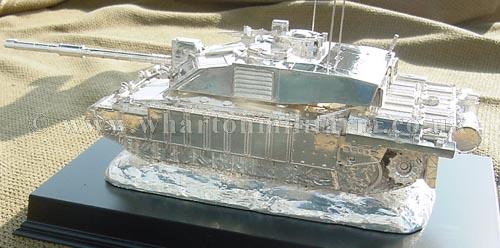 A beautiful hallmarked sterling silver mess table piece of an Op Telic Challanger 2 tank, this silver model is the finest silver Challenger 2 tank made to date. The tank is an awesome 14 inches approx in length and extremely detailed. This tank was specifically made for the Royal Tank Regiment mess table.