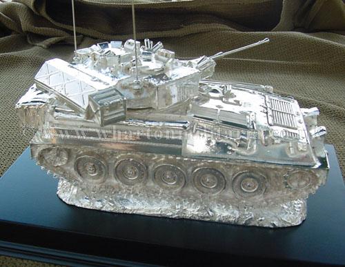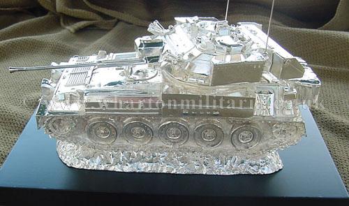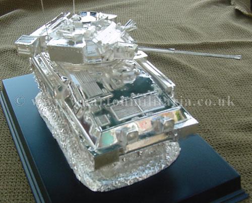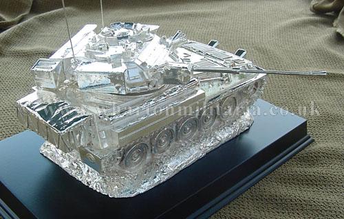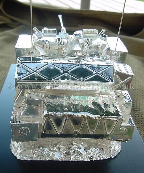 A beautiful hallmarked sterling silver mess table piece of a Scimitar tank, this silver model is the finest silver Scimitar tank made to date. The tank is an awesome 14 inches approx in length and extremely detailed. This tank was specifically made for the Royal Tank Regiment mess table.