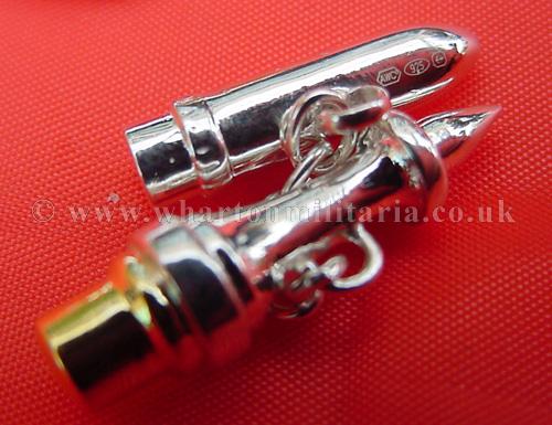 An extremely fine and well presented pair of dress cuff-links in hallmarked solid silver. Cuff-links feature the AFPDS and HESH rounds which are in proper proportion and presented within a Regimental marked box for the Royal Tank Regiment. These were specifically made to the request and specifications of 1RTR Senior Ranks and are simply the finest on the market today. These are offered at a very cost effective and discounted price to the tank collecting community and RTR Veterans.