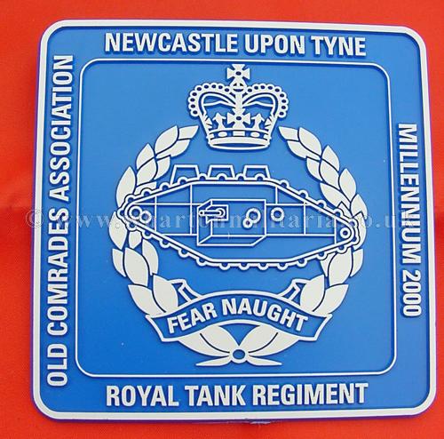 Royal Tank Regiment (RTR) Millenium 2000 beer mat, produced by the Newcastle Upon Tyne Old Comrades Association, made in thick blue plastic, approx size 3 ½ x 3 ½ inches (3mm thick and 88x88mm square), cannot be many of these still hanging about. Something different.