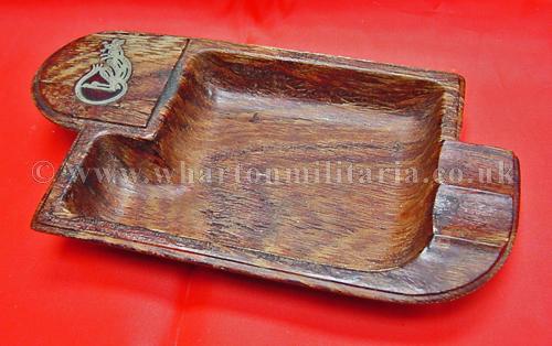 Desert Rats Wooden Ashtray in very good presentable condition, approx 6x3 inches, with an excellent inset metal desert rat, possibly silver, a fine desert rats collectable.