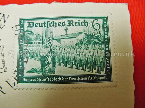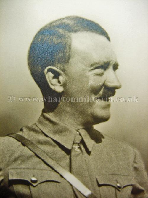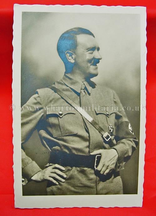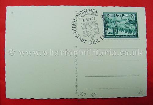 A scarce early NSDAP period postcard of Adolf Hitler in unused condition, circ 1938, commemorative franking for Munchen 9th November 1939. Hitler is in uniform, though in a scarce 'relaxed leader' pose. A nice clean postcard.