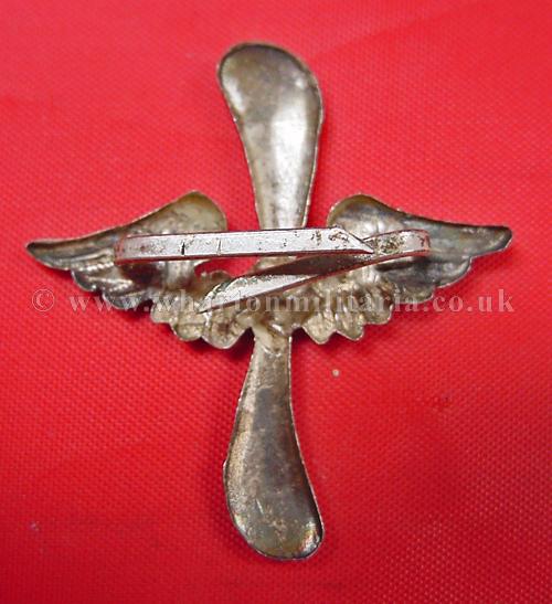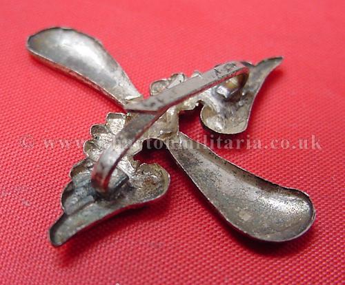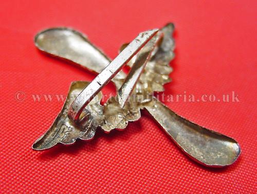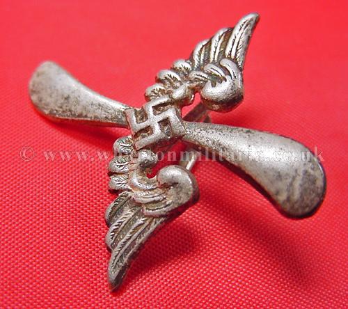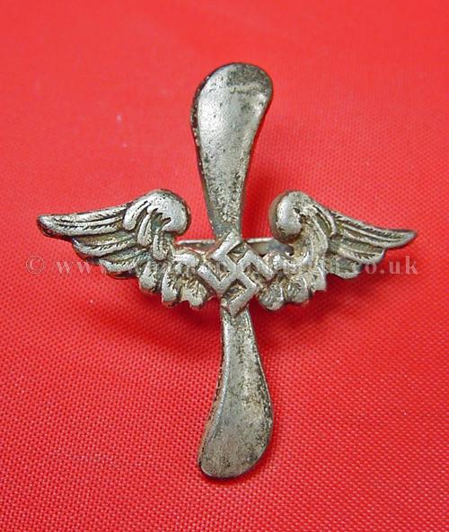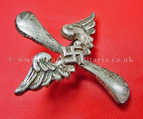 Deutscheluftsportsverbande (DLV) collar insignia, rare pre-war only used to 1933, propeller with swing arm and swastika, pins intact, height approx 34mm, excellent condition retaining most of its silver finish. A very rare badge.