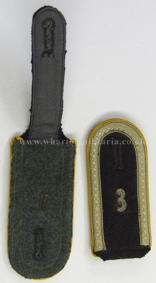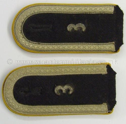 SS Unteroffizier - pair epaulettes, cavalry (Floran Gaynor Regt.) silver braiding on black, yellow piping, "3" insignia on each strap, retaining their slip on straps, SS shoulder boards are now quite scarce.