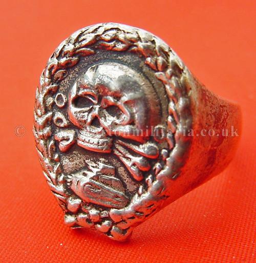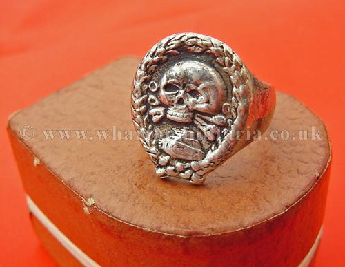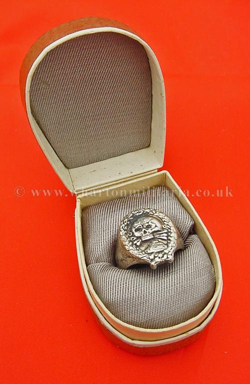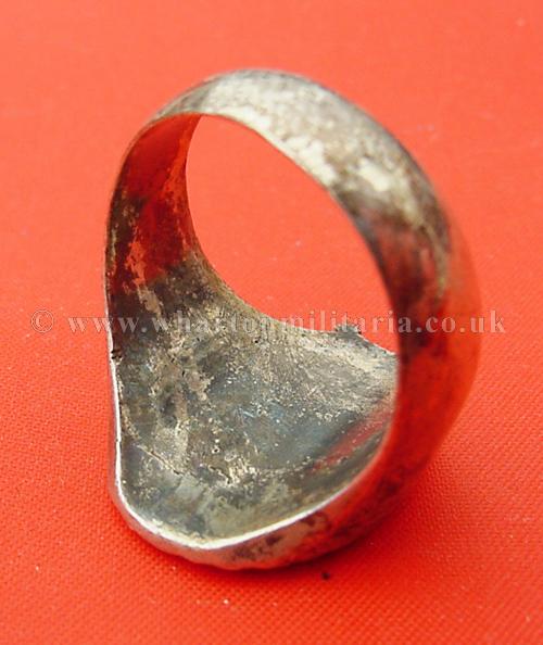 Spanish Civil War signet ring as worn by the German and Spanish tank troops, signet ring is solid silver (tested, marked 925) and heavy, has Spanish Tank badge on top, with smooth clean sides, very simple art deco style ring as was common in the 1930s into the war years. Housed within a typical 30s ring box though unlikely to be original to the ring, however, these rings were private purchase so could be. Stunning ring, very impressive.
