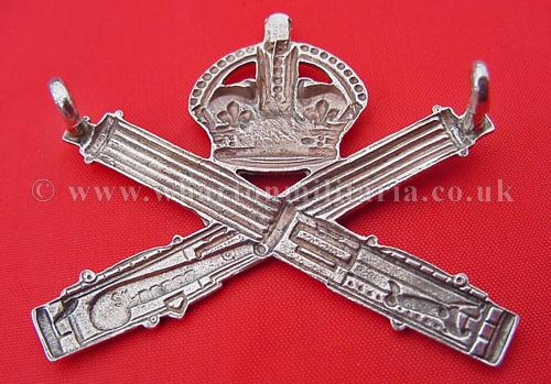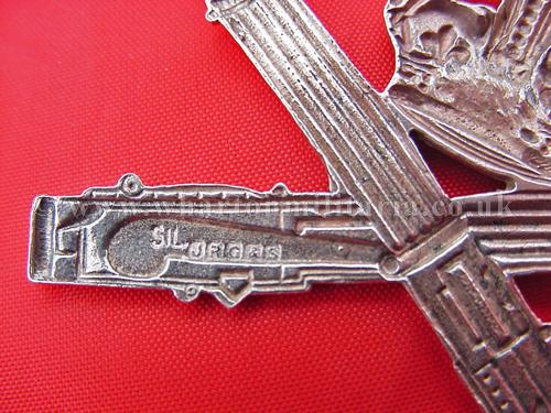 A very nice Machine Gun Corps Officers cap badge in solid silver, both lugs intact, marked 'Sil' and 'JRG&S', lovely badge