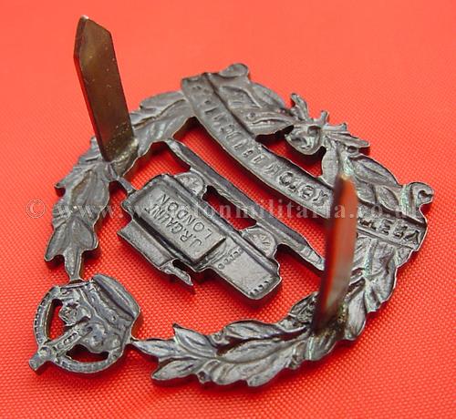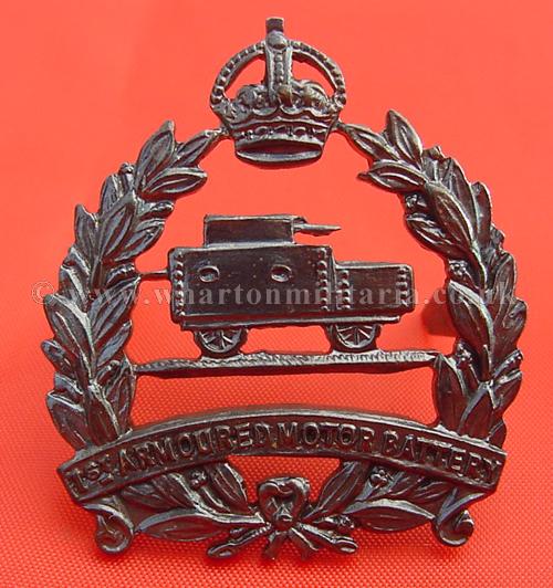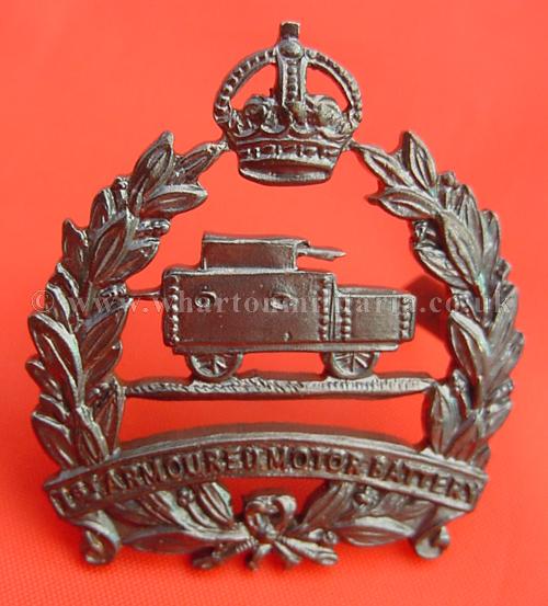 Not strictly a WW1 raised unit but formed immediately post war serving in the Arab Rebellion in Mesopotamia. A scarce 1st Armoured Motor Battery Officers bronze cap badge in mint unissued condition, 2 blades in un-bent condition, never worn, badge has Gaunt oblong plate to rear - A rare badge in this unissued condition. Specimen example.