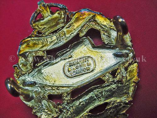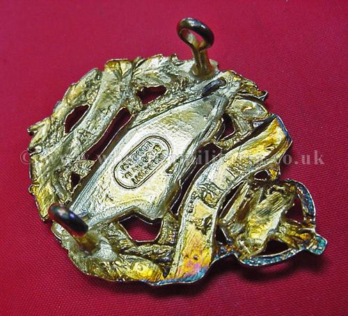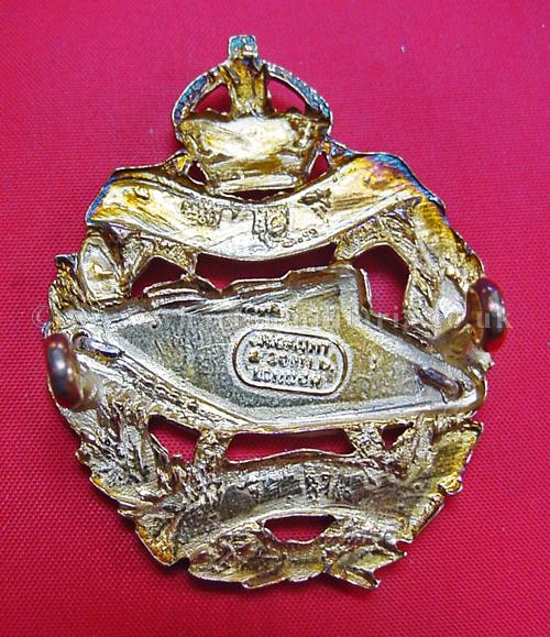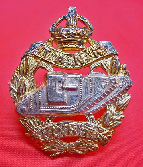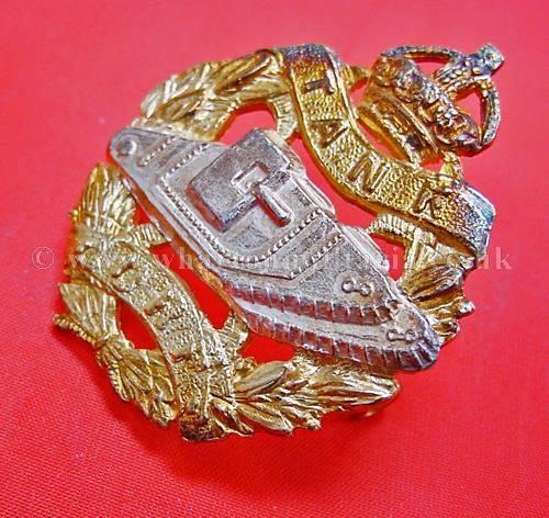 A scarce Tank Corps Officer's 2 piece cap badge retaining full finish, both long lugs intact, nicely marked with Gaunt makers mark. A fine example.