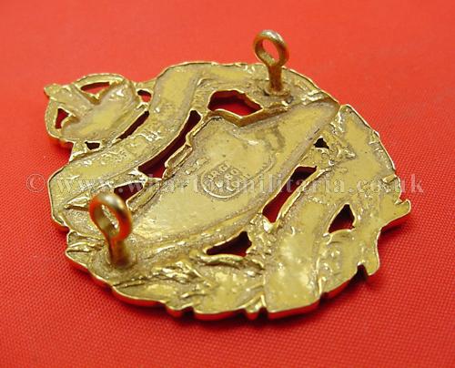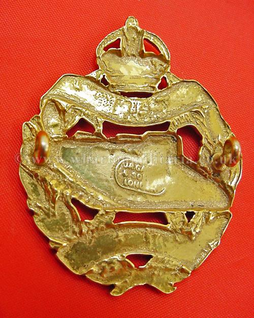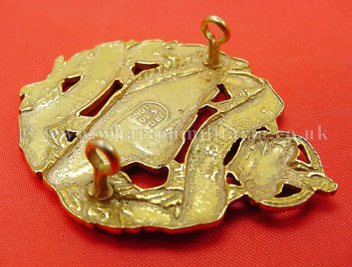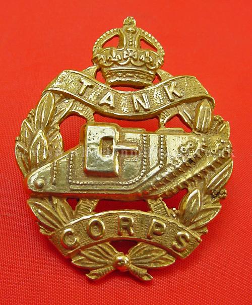 Royal Tank Corps cap badge, in excellent condition, domed badge, officers gilt finish, with Gaunt makers mark, both lugs intact, a nice example.