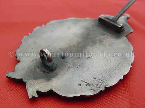 WW1 Imperial German Air Gunners Badge in excellent condition, hollow with flat back plate and tapered pin, unmarked ~ no manufacturers detail or silver content. This is a scarce badge.