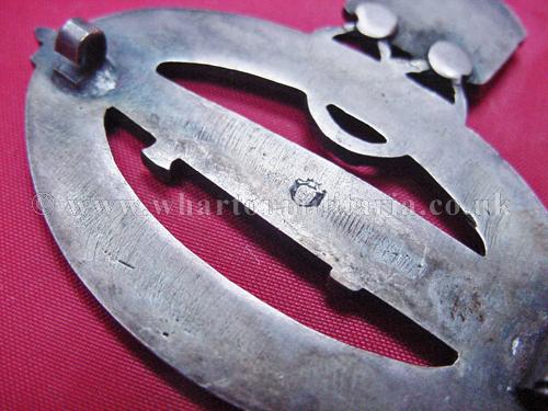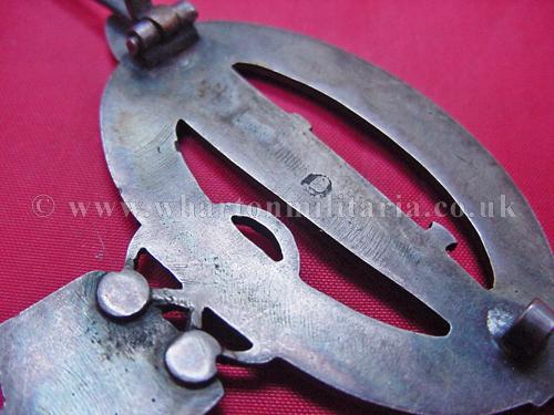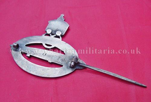 WW1 Imperial Navy Zeppelin Airshipmens badge in excellent condition retaining good detail, flat back and tapered pin, all patina is consistent, back is maker marked with the logo of Wilhelm Deumer. Not actually a WW1 badge, no aircrew were issued any badges during the war, these badges were issued in late 1920 as commemorative badges for airshipmen, the navy version had the imperial crown mounted above the badge. A very nice badge.